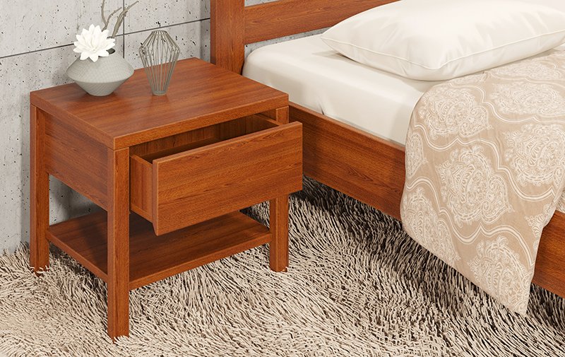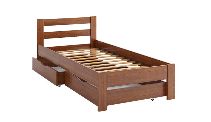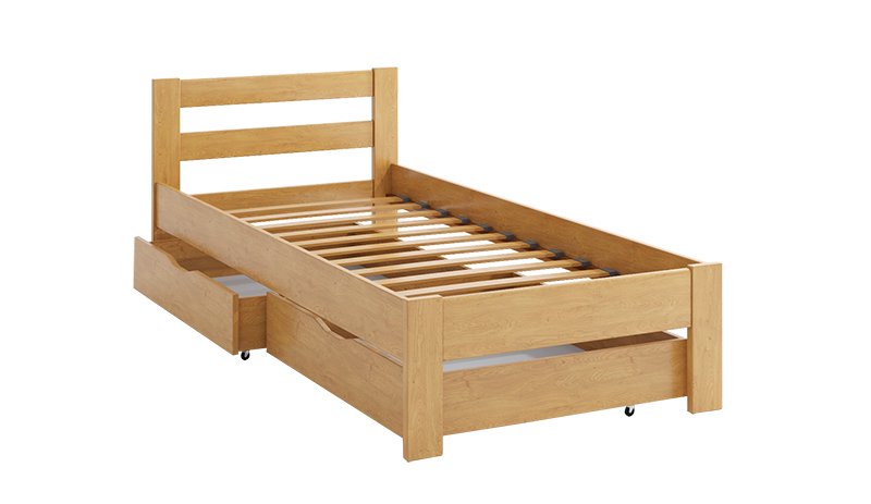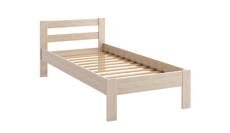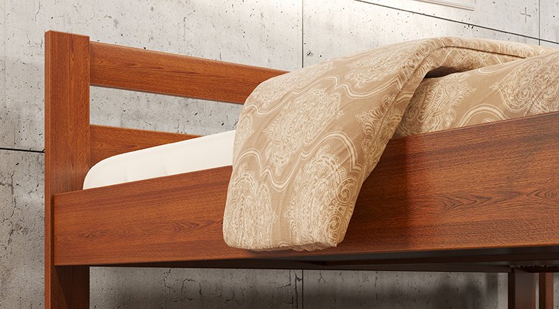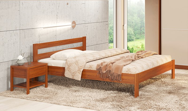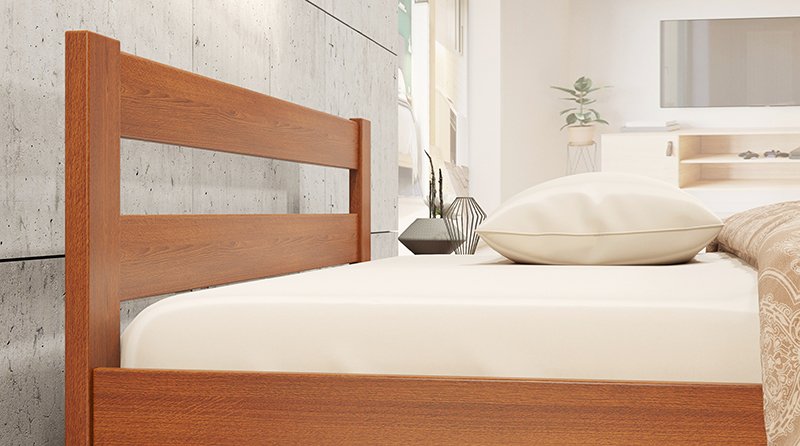 Кровать изготовляется из натурального дерева (Бук) и укомплектована ортопедической основой из крепких буковых ламелей, которая служит опорой для матраса и обеспечивает длинный срок его эксплуатации (стандартное расстояние между ламелями 4,3 см ).