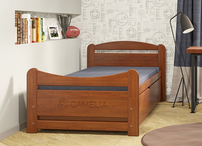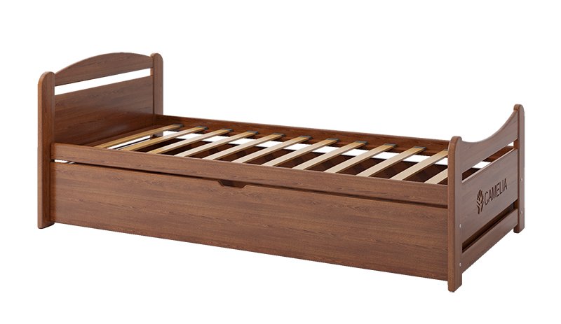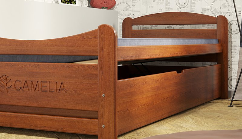 Кровать изготовляется из натурального дерева (Бук) и укомплектована из крепких буковых ламелей, которые служат опорой для матраса и обеспечивает долгий срок его эксплуатации (стандартное расстояние между ламелями 5,5 см ).