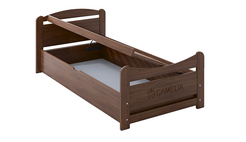 Кровать укомплектована подъемным механизмом с вместительной нишей для белья.
