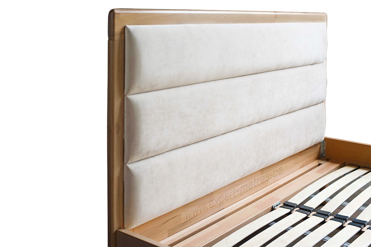 Кровать изготовляется из натурального дерева породы - БУК и укомплектована ортопедической основой из крепких буковых ламелей, которая служит опорой для матраса и обеспечивает длинный срок его эксплуатации (стандартное расстояние между ламелями 4,5 см ).