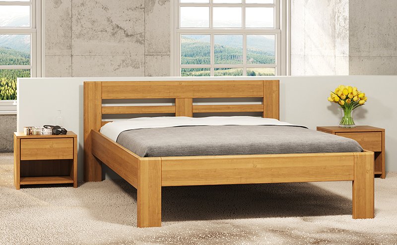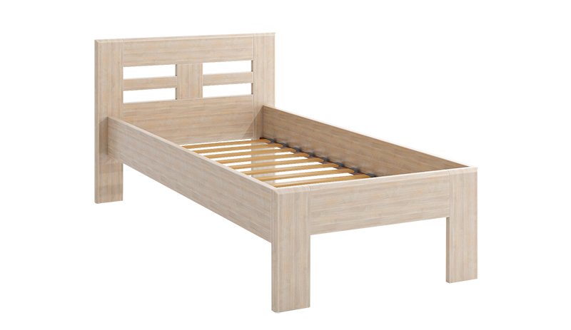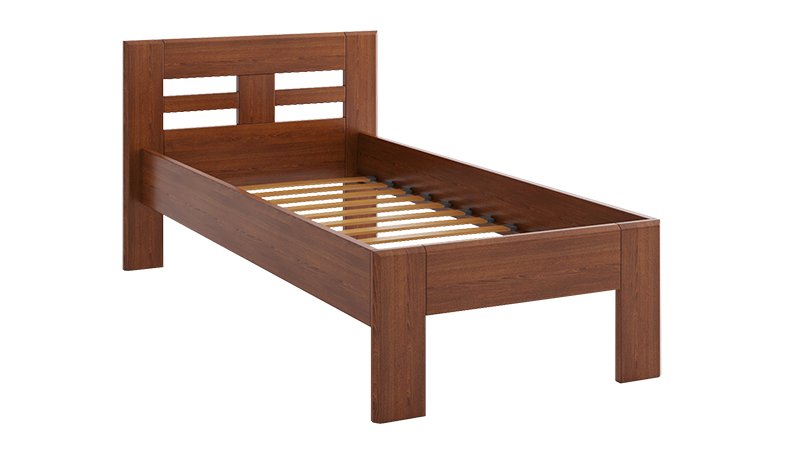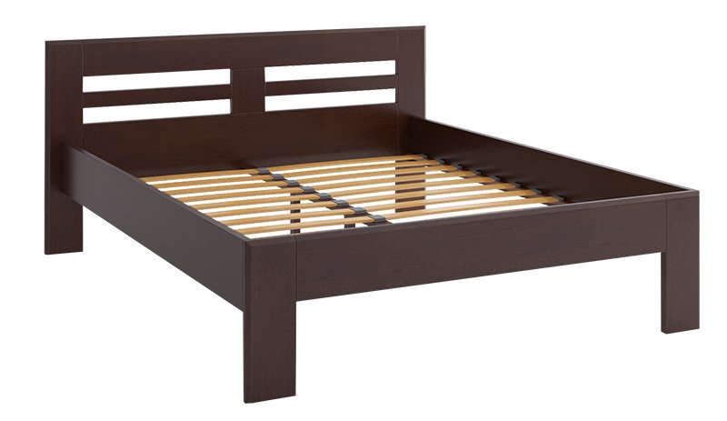 Кровать изготовляется из натурального дерева (Бук) и укомплектована ортопедической основой из крепких буковых ламелей, которая служит опорой для матраса и обеспечивает длинный срок его эксплуатации (стандартное расстояние между ламелями 4,3 см ).