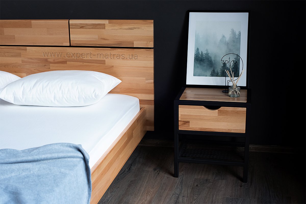Кровать СКАРЛЕТ выполнена как "Готовое Решение" - цвет покраски выполнен в Натуральный лак. Особенностью кровати является сборной металлический каркас с буковыми ламелями, так же в изголовье установлена черная металлическая пластина, что является дизайнерским решением, а так же для придания жесткости конструкции.