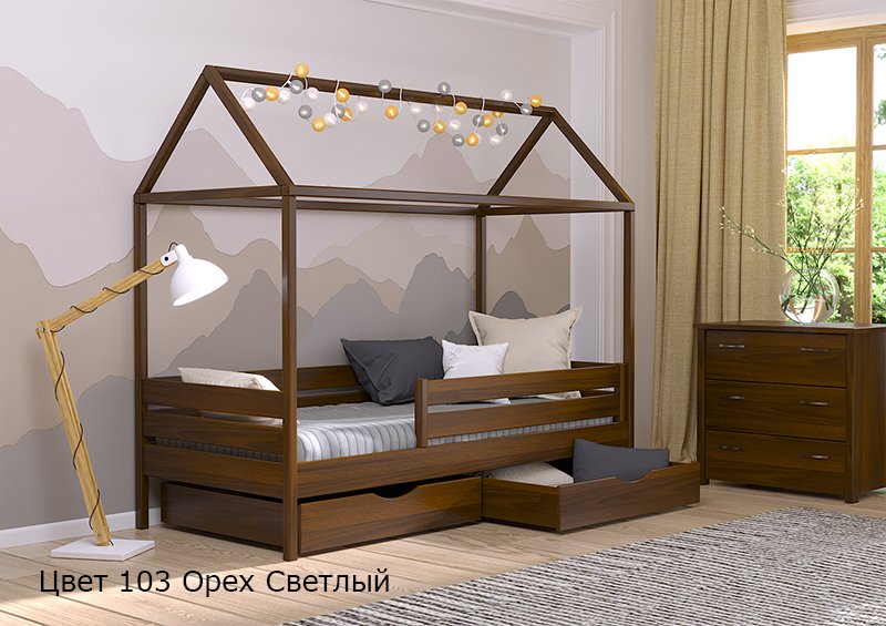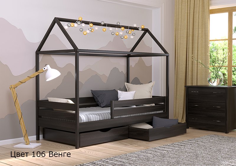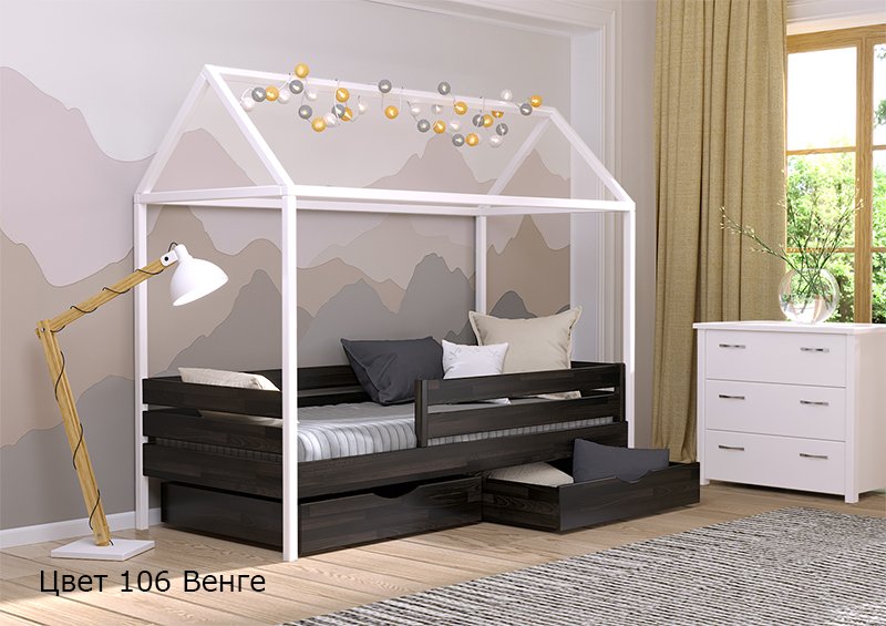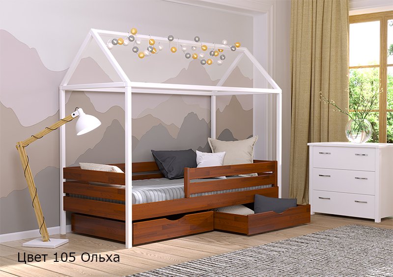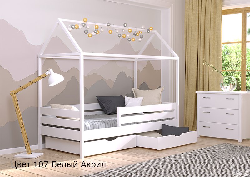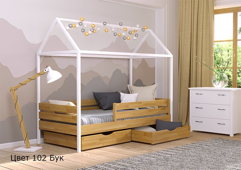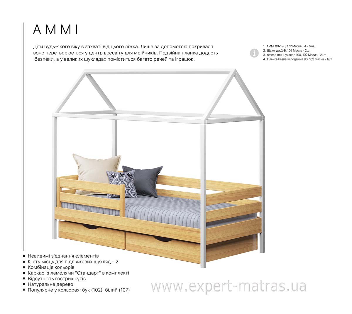 Так же особенностью является то, что в «Амми» Вы можете комбинировать белый цвет, которым окрашены ножки и верхняя часть в форме крыши, с другими восемью цветами окраса других частей кровати.