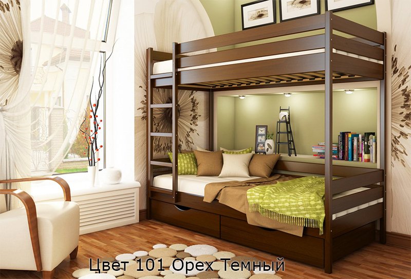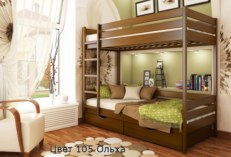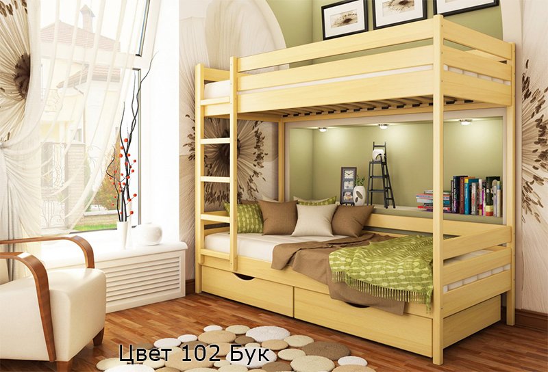 Двухъярусная кровать «Дуэт». Стойки этой модели выполнены из буковой древесины толщиной 40х40мм.