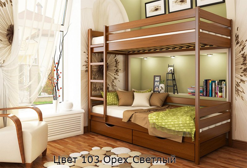 Кровать изготавливается из натурального дерева БУК (щит или массив), покрытое лаком.