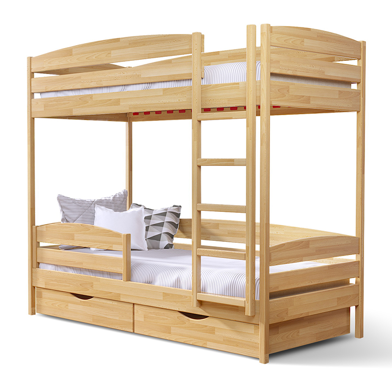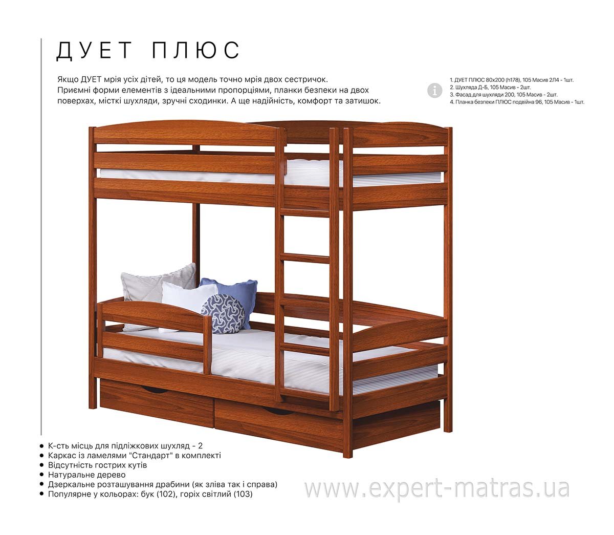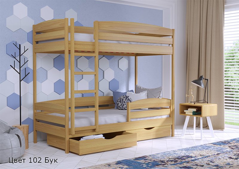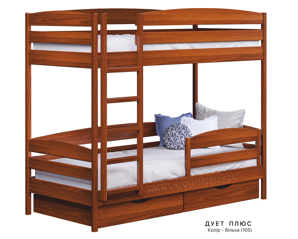 Двухъярусная кровать «Дуэт Плюс». Стойки этой модели выполнены из буковой древесины толщиной 40х40мм.