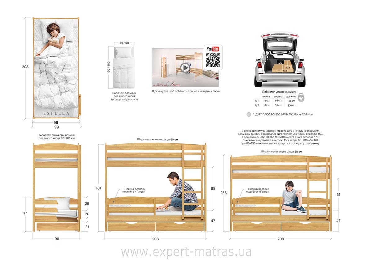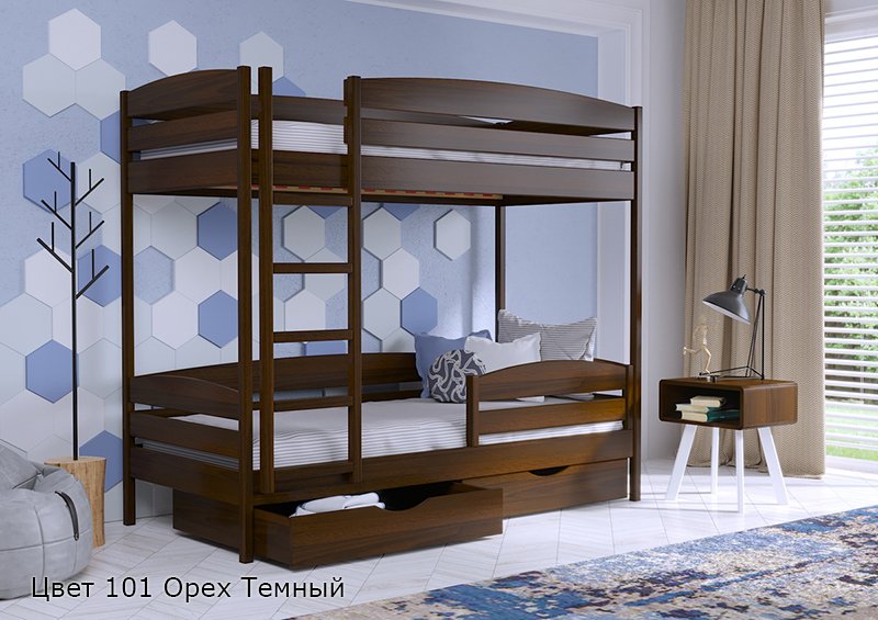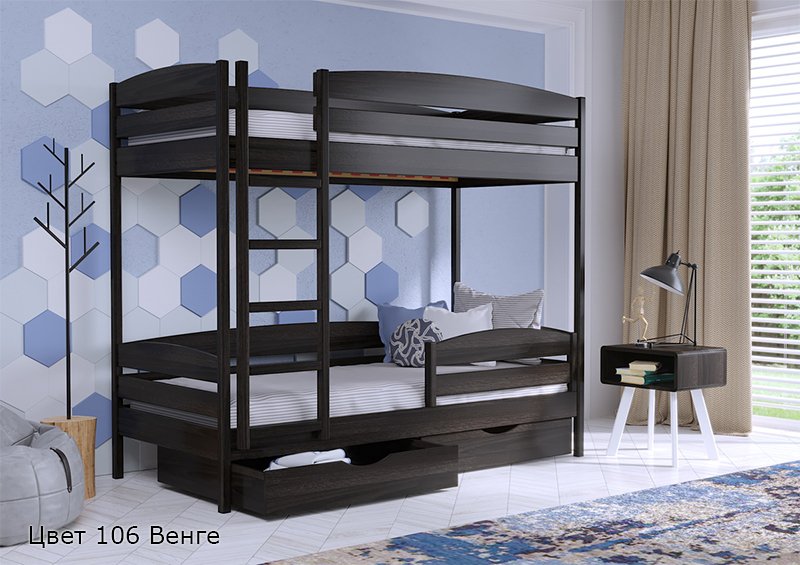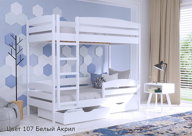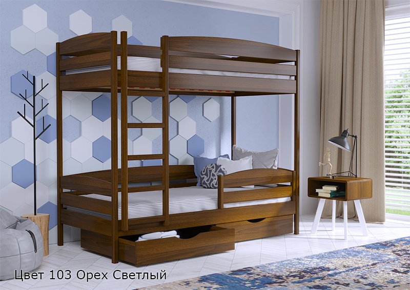 Двухъярусная кровать «Дуэт Плюс». Стойки этой модели выполнены из буковой древесины толщиной 40х40мм.