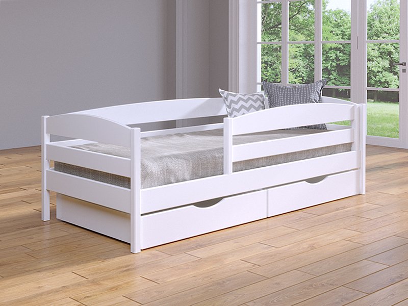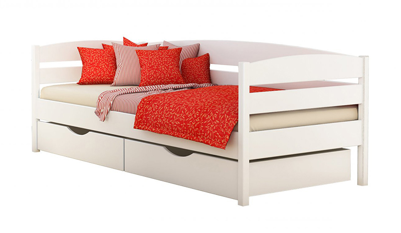 Кровать может комплектоваться вместительными ящиками. Высота такого ящика составляет 18см, длина – 94 или 98см (в зависимости от длины кровати). Ящик перемещается по полу с помощью роликов и к кровати не крепится.