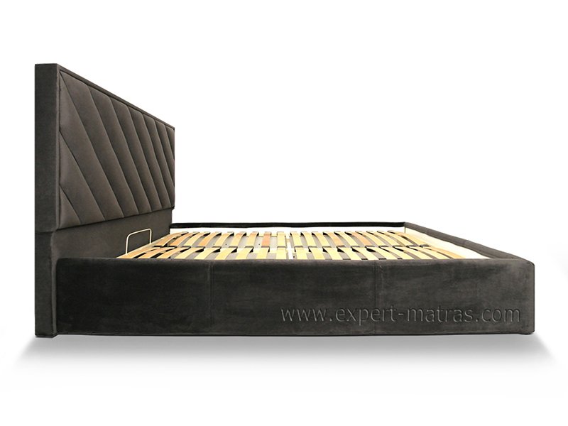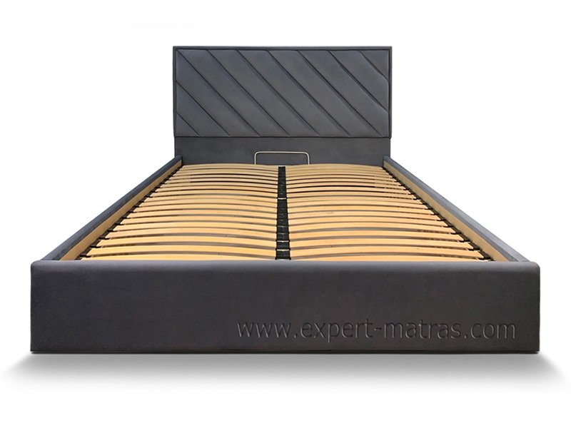 Металлическая цельносварная верхняя рамка с ламелями (38 шт) + дополнительная нижняя металлическая цельносварная рамка + широкие царги (6 см) со съемным цельным чехлом на липучках + подъемный механизм с двумя импортными пневмопатронами + бельевой ящик глубиной 17 см с ламинированным ХДФ на дне + металлические опоры 5 см
