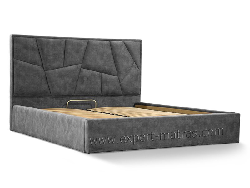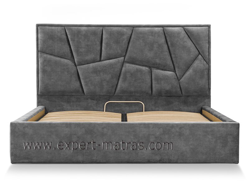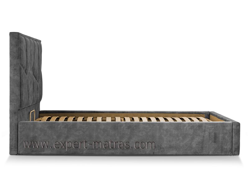 Металлическая разборная рамка с ламелями (38 шт) + обитые широкие царги (7,5 см) + подъемный механизм с двумя импортными пневмопатронами + бельевой ящик глубиной 18,5 см со спан-бондом на дне + пластиковые опоры 5 мм |