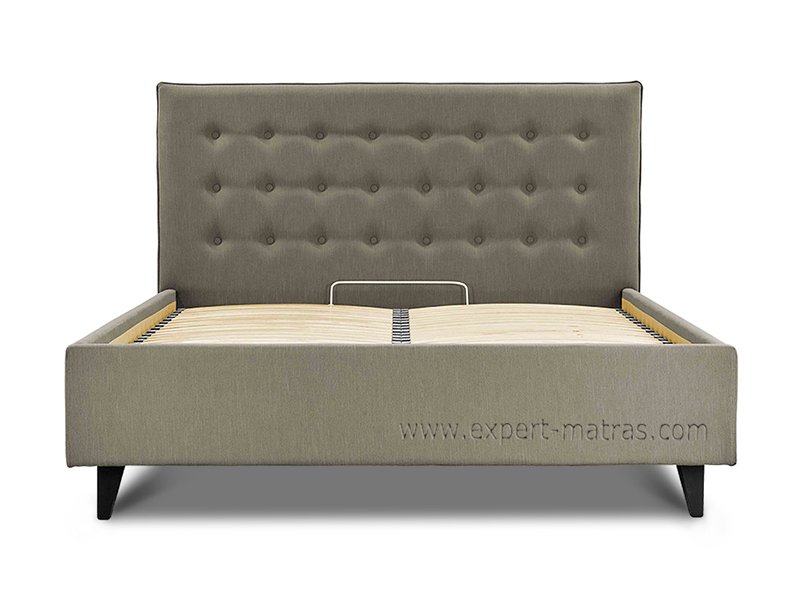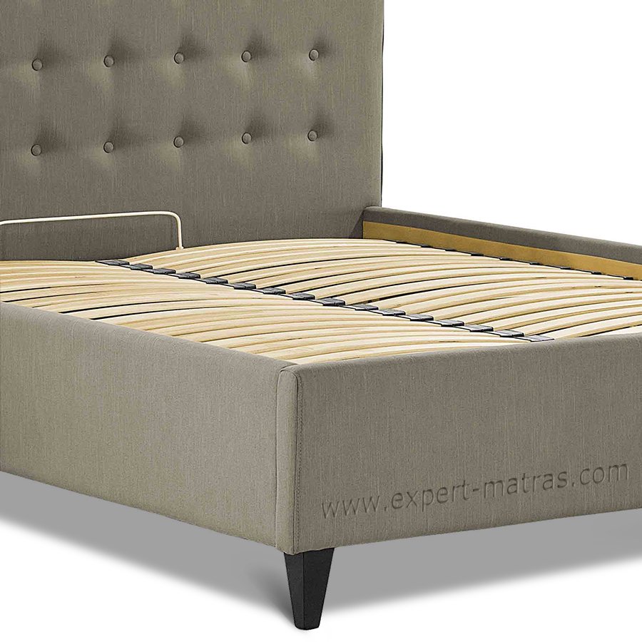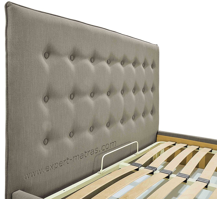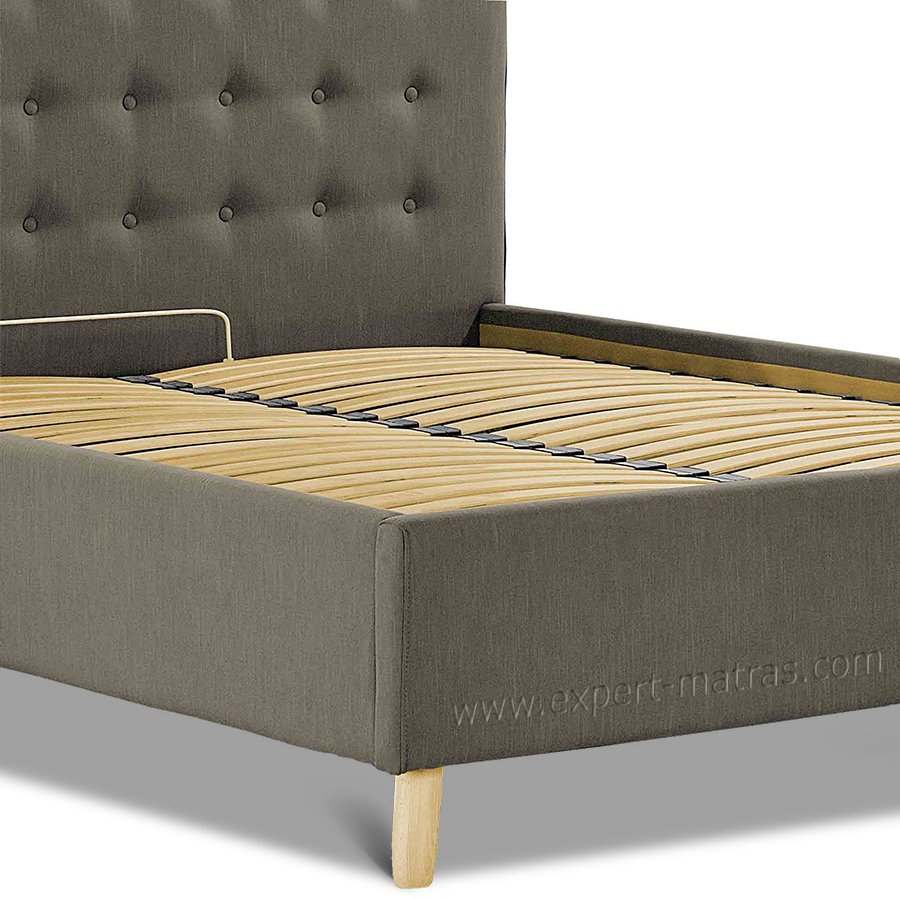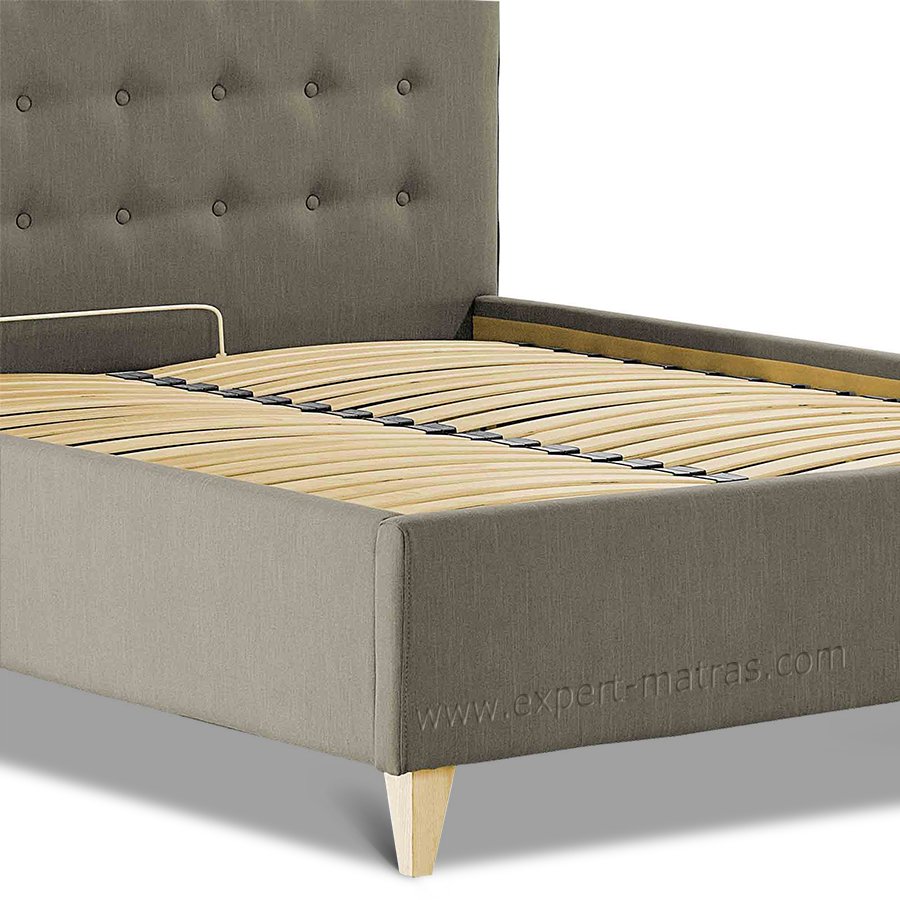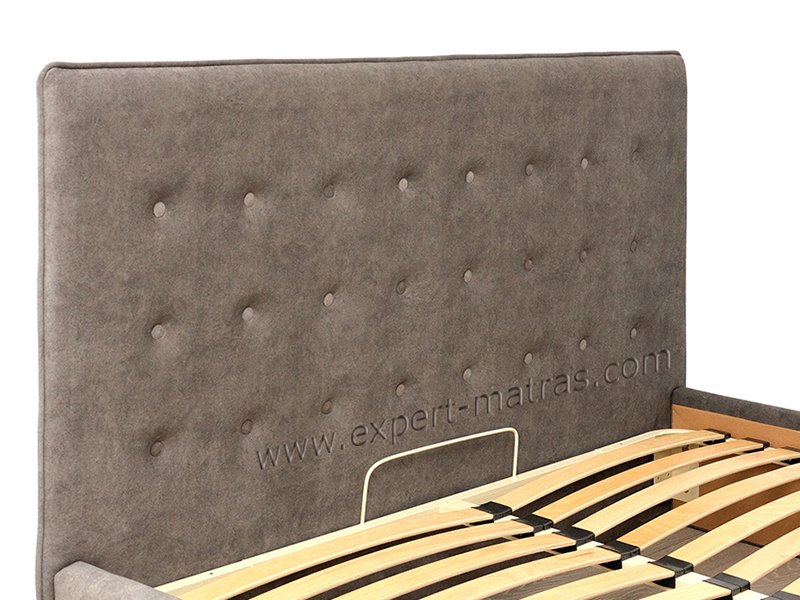 Металлическая разборная рамка с ламелями (38 шт) + обитые широкие царги (7,5 см) + подъемный механизм с двумя импортными пневмопатронами + бельевой ящик глубиной 18,5 см со спан-бондом на дне + пластиковые опоры 5 мм |