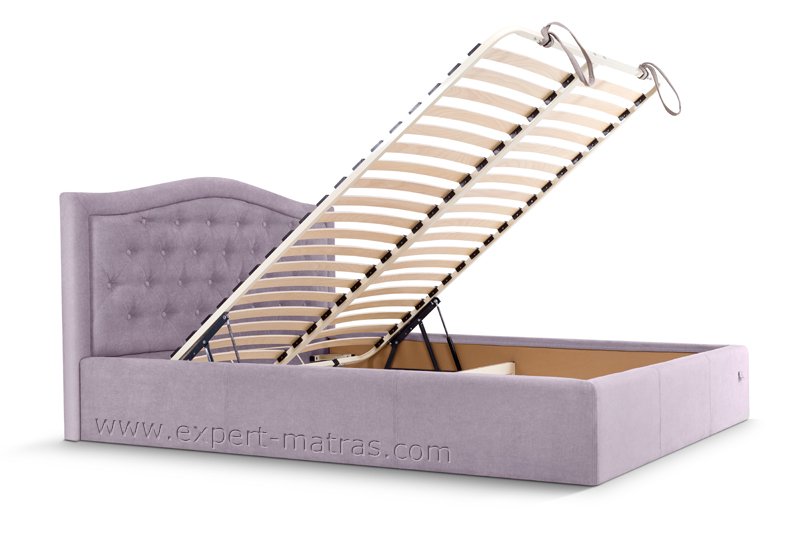 Металлическая разборная рамка с ламелями (38 шт) + обитые широкие царги (7,5 см) + подъемный механизм с двумя импортными пневмопатронами + бельевой ящик глубиной 18,5 см со спан-бондом на дне + пластиковые опоры 5 мм |