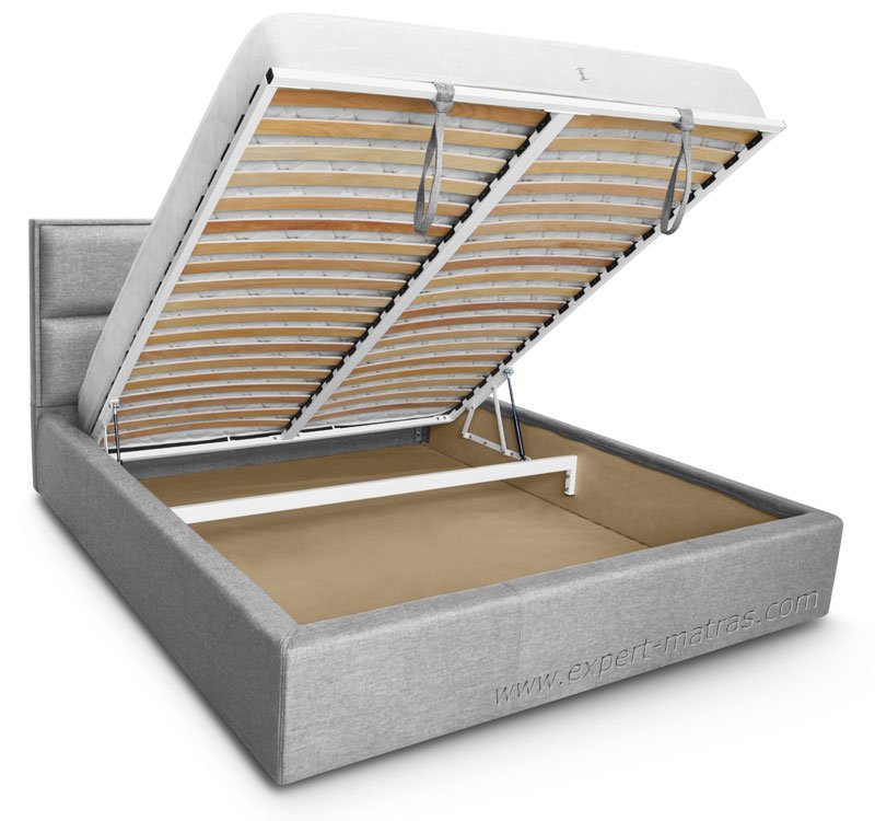 Металлическая разборная рамка с ламелями (38 шт) + обитые широкие царги (7,5 см) + подъемный механизм с двумя импортными пневмопатронами + бельевой ящик глубиной 18,5 см со спан-бондом на дне + пластиковые опоры 5 мм |