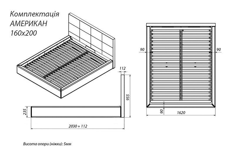 | Комплектация Стандарт | Металлическая разборная рамка с ламелями (36 шт) + обитые широкие царги (7,5 см) + пластиковые опоры 5 мм |