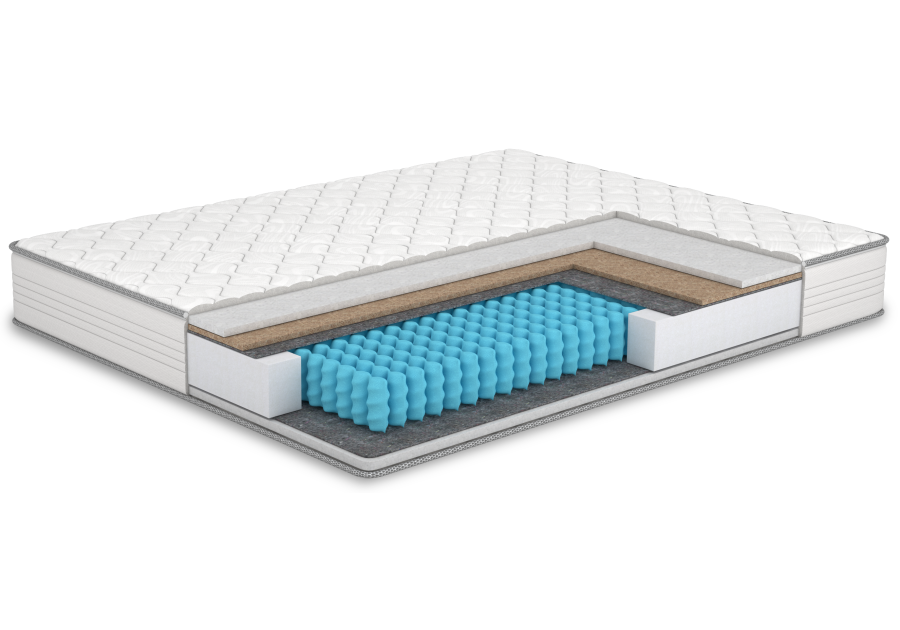 Инновационный, экологически чистый нетканный материал с большим содержанием хлопка, гипоаллергенный, нетоксичный, не впитывает влагу и запахи. Все эти свойства достигаются благодаря особенной форме и скреплению волокон, позволяющие материалу сохранять свою форму и легко её восстанавливать. Cotton coir обеспечивает оптимальный температурный режим, высокую стойкость к деформации и постоянным нагрузкам.