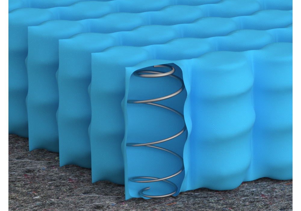 Это независимый пружинный блок, который состоит из эластичных металлических пружин бочкообразной формы, зашитых в отдельные карманы из высокопрочного материала и скрепленных между собой в центре. Такая конструкция позволяет каждой пружине точечно реагировать на нагрузку, без влияния на соседние пружины и максимально точно повторять фигуру отдыхающего, а так же гарантирует удобное положение и правильную поддержку во время сна.