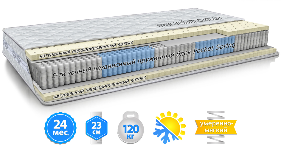 Натуральный вспененный материал, получаемый из переработанного сока дерева Гевеи. Латекс чрезвычайно эластичный, упругий и гигиеничный материал, который имеет пористую структуру. Латексные плиты в основном выполняются с вертикальными отверстиями, которые позволяют отводить влагу и вентилировать спальное место. Главное преимущество натурального латекса – его структура со временем практически не дает усадки, а значит долгое время будет дарить комфорт нового изделия.