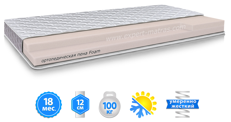 Нетоксичный, долговечный и гипоаллергенный материал. Благодаря структурным особенностям ортопедическая пена способствует правильному распределению давления на различные участки тела, снимает напряжение с сосудов и улучшает кровообращение во время сна. Высокий уровень плотности материала улучшает ортопедические свойства матраса. Пенополиуретан, широко используемый сегодня в матрасах, обладает комфортной мягкостью и вместе с тем хорошей упругостью.