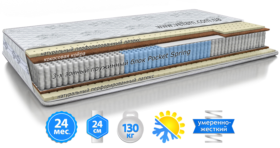 Блок независимых друг от друга пружин, каждая из которых функционирует отдельно от соседних. Благодаря этому достигается высокая анатомическая точность поверхности матраса. Три зоны различной жесткости обеспечивают должную поддержку каждой отдельной части тела. Для создания различных зон упругости или целых блоков повышенной жесткости применяется проволока различной толщины (диаметра), используются пружины разных диаметров. Чем меньше диаметр пружины, (чем она тоньше), тем больше проявляется эластичность блока пружин. При его изготовлении мы чередуем усиленную и деликатную поддержку, чтобы сохранить правильное положение позвоночника во время сна.