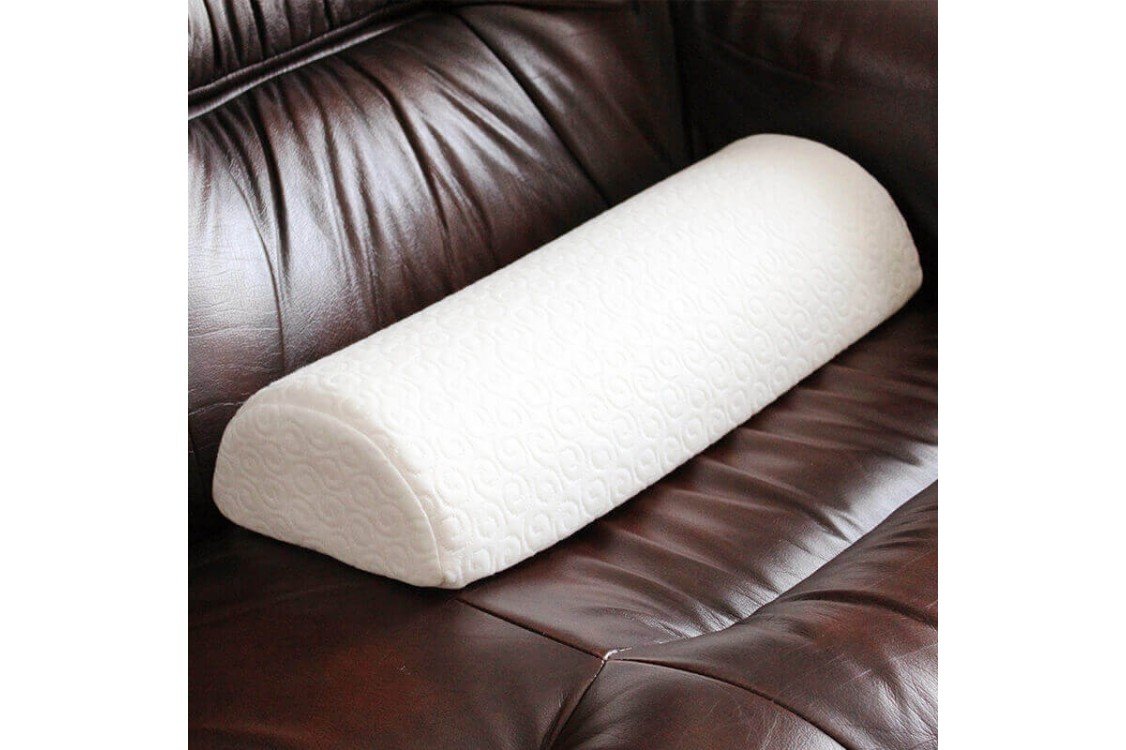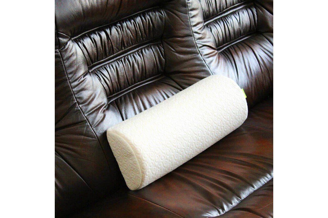 Подушка имеет особенный дизайн, который позволяет использовать подушку в качестве поддержки поясничного и шейных отделов, а так же в качестве поддержки под колено.